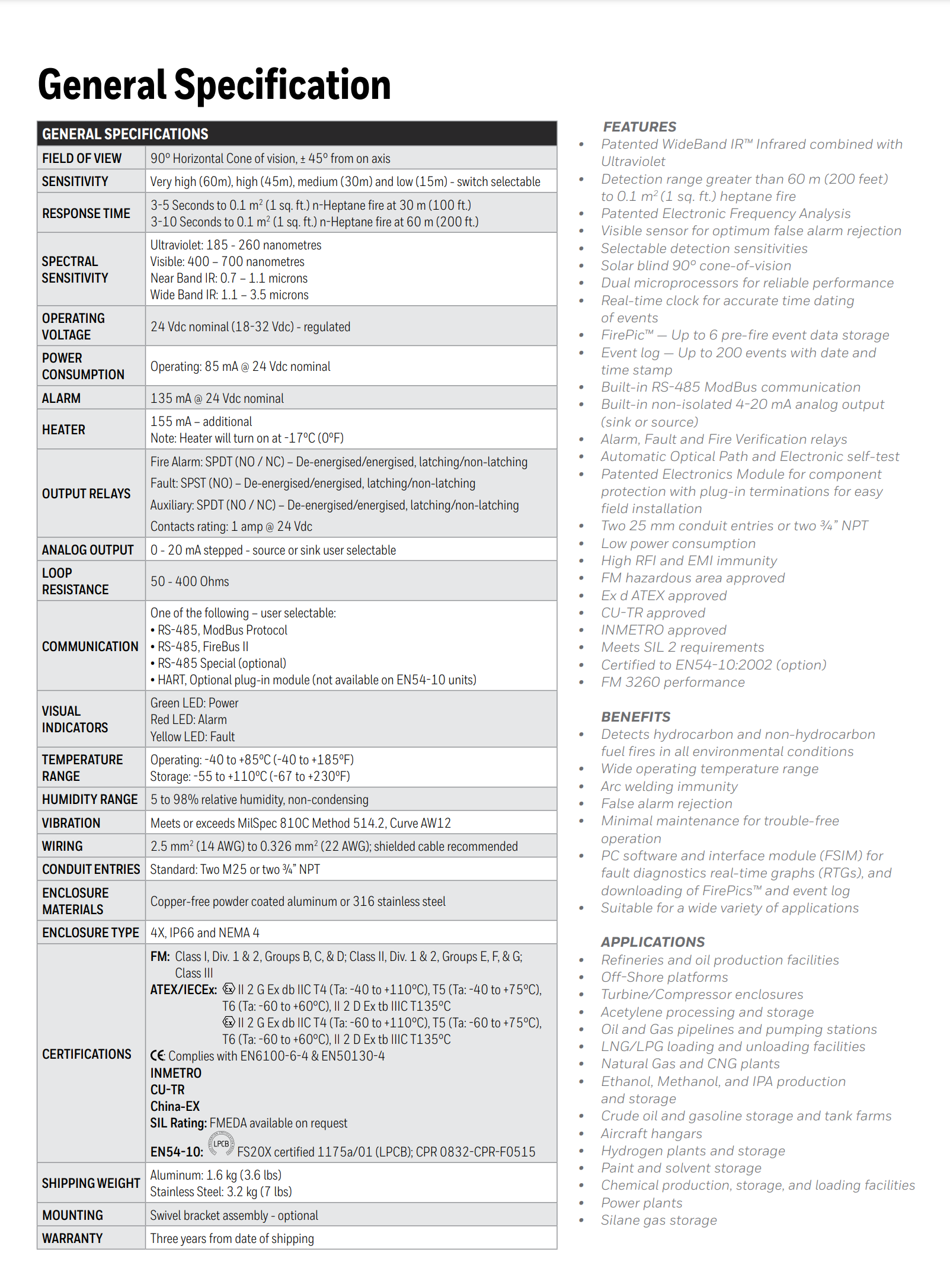 一種高速火災探測器,專為液體和粉末涂層應用設計FS10火焰探測器